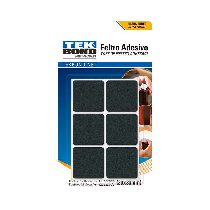 FELTRO ADESIVO QUADRADO 30MM PT 12PC TEK